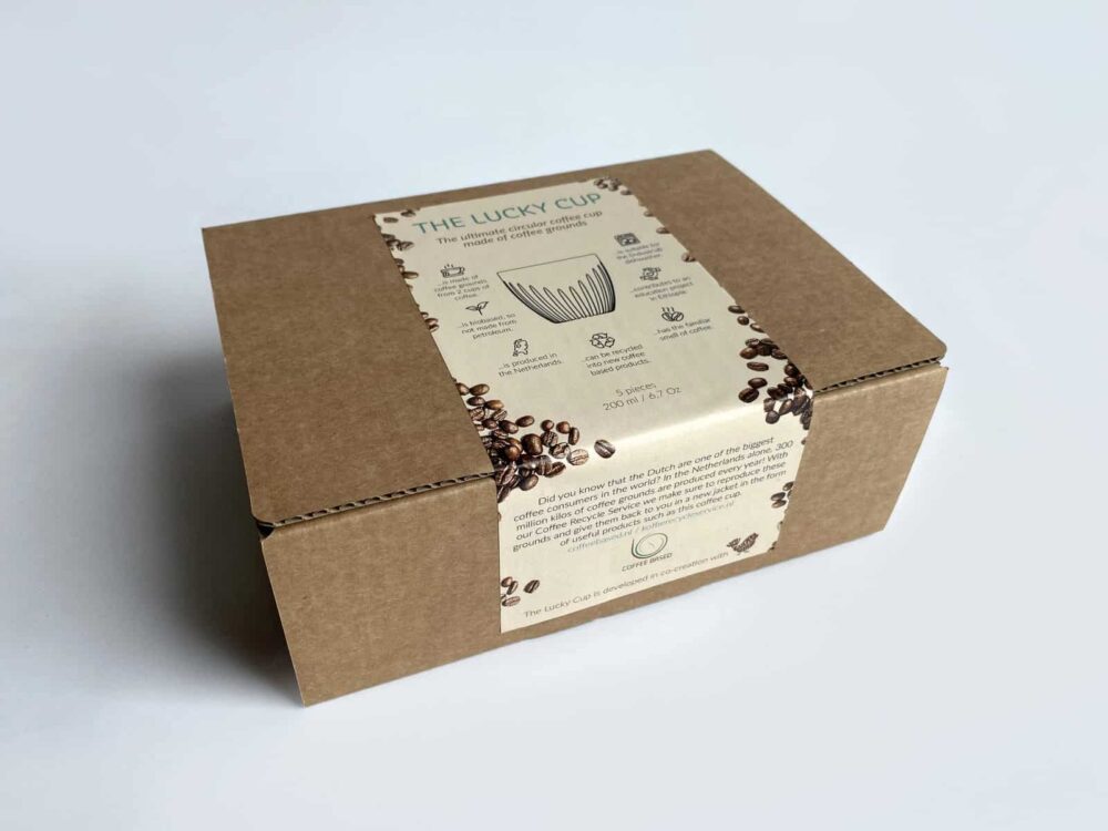 - The Lucky Cup wordt gemaakt van de resten van suikerriet en koffiedik. Door het gebruik van deze organische materialen, kunnen er per product afwijkingen in de kleur, geur en uitstraling voorkomen. Het is mogelijk dat de kleur na verloop van tijd veranderd, bijvoorbeeld door invloed van uv-straling.