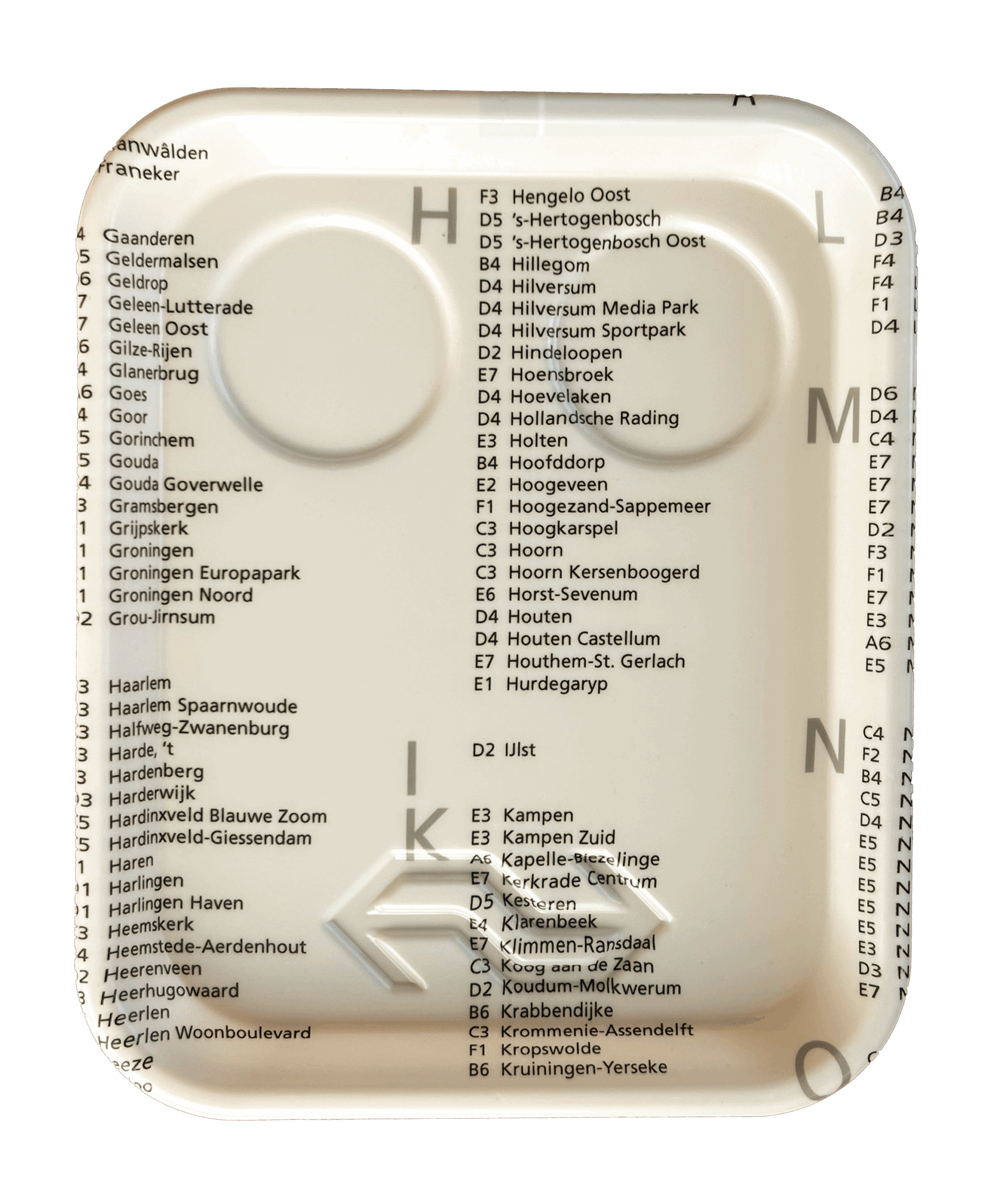 Nu de dienstregeling verandert, zit mijn werk er op. Geen zorgen, wij worden altijd keurig gerecycled. Maar deze keer hebben we echt een tweede leven gekregen! Studenten van de hogeschool voor de kunsten Utrecht hebben van mij dit dienblad gemaakt. Zij wonnen hiermee de ontwerpwedstrijd voor duurzaam hergebruik.