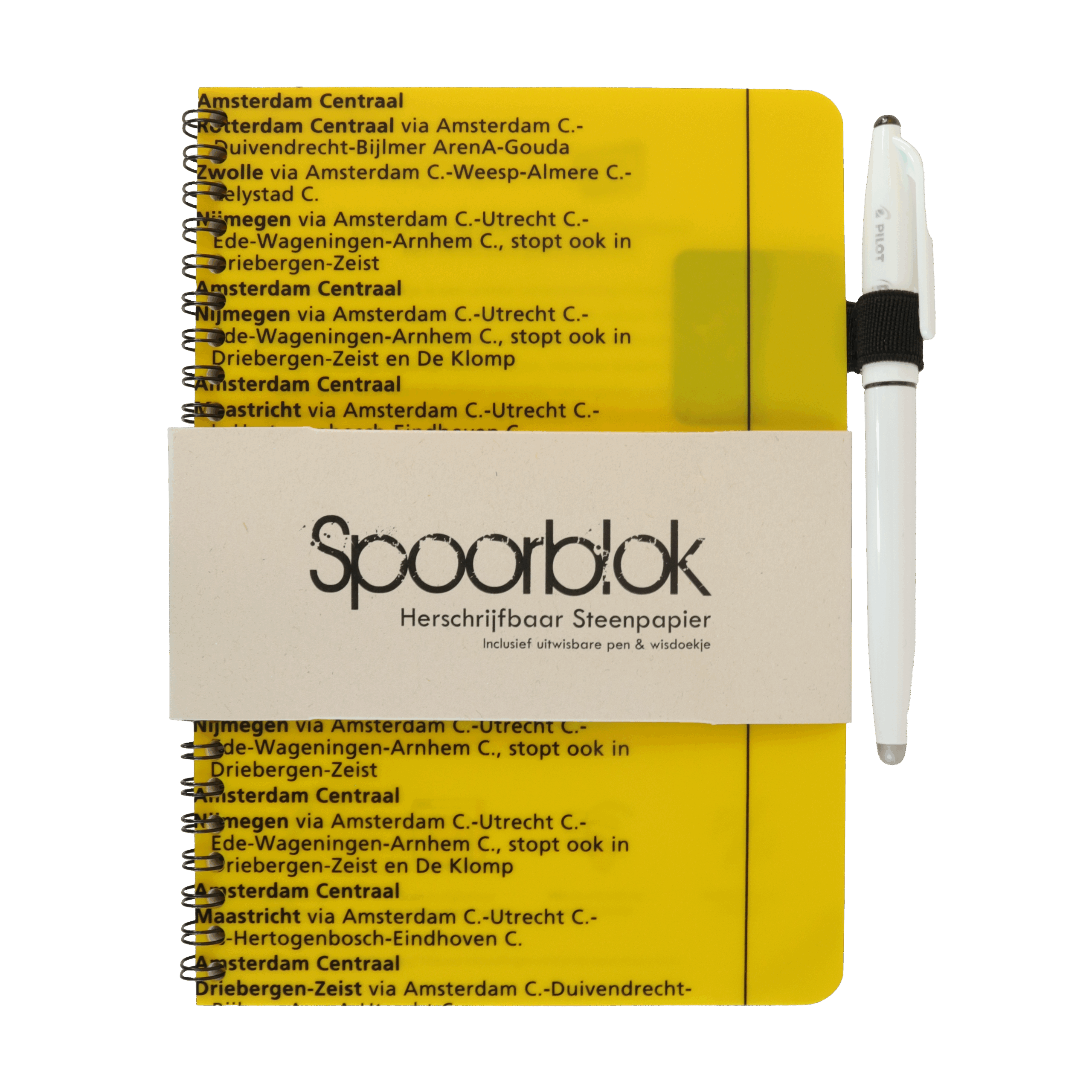 Stap binnen in een wereld van duurzaamheid met dit unieke herschrijfbare spoorblok; het resultaat van de geweldige samenwerking tussen Moyu en VerdraaidGoed. Een notitieboek met kaften van hergebruikte treintijdborden en pagina’s vervaardigd van 100% boomvrij, waterbestendig en scheurbestendig steenpapier.